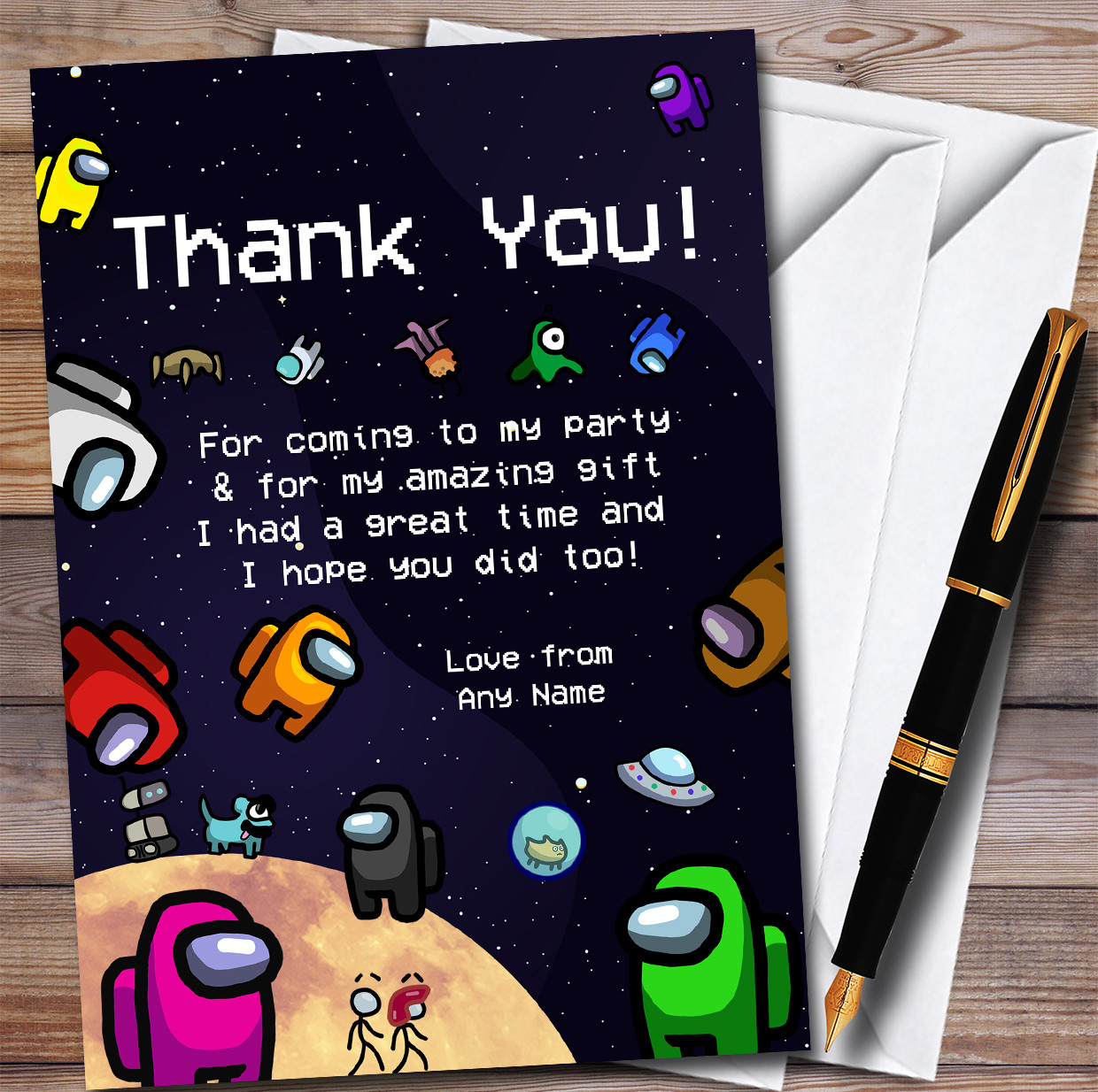 Among Us Characters Pets In Space Children S Birthday Party Thank You Cards The Card Zoo
