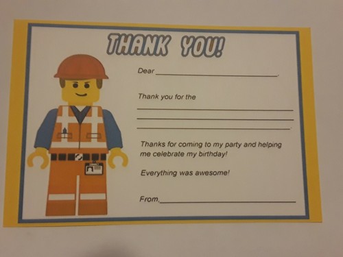 Lego Kids Birthday Party Thank You Cards With Envelopes 25 Invites 4x6 Size Ebay